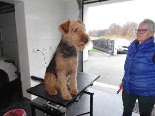 Abschied: Styrian Spirit Hope hat heute mit 13 Jahren für immer ihre Augen geschlossen und hinterlässt ihre traurige Familie Rekun, die sie sehr geliebt hat und unendlich vermissen wird. Hope war in ihren jungen Jahren immer wieder mit der damals sehr jungen Tochter der Familie bei unseren Trimmseminaren dabei - sie machte das wirklich perfekt! Auch war sie für den Hundehaar- allergischen Sohn der Familie eine optimale Spielgefährtin, da der Airedale auch in diesen Fällen meist geeignet ist. Ich wünsche der Familie alles Gute, und dass die schönen Erinnerungen bald über den Verlust hinweghelfen mögen. |
