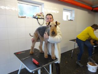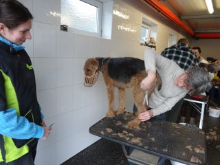 Trimmseminar: Heute fand unser Herbst-Trimmseminar statt. In einer kleinen und familiären Runde fanden sich die Teilnehmer um 9 Uhr morgens ein, um sich an die Arbeit mit ihren haarigen Vierbeinern zu machen. Sie waren bereits so gut wie möglich vorbereitet, was die Arbeit vor Ort um einiges beschleunigte. Alle waren sehr fleißig am werken, und am Ende konnten wieder alle schön getrimmt die Heimreise antreten. Macht weiter so! |