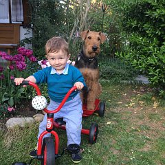 Fürsten Liechtenstein zu Familie Müller. Sie wird die Airedale-Lücke füllen, die Styrian Spirit Holly hinterlassen hat. Gemeinsam mit dem Dackel der Familie wird sie wohl für jede Menge Temperament und Leben im Haus sorgen! |