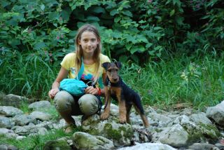 der Steiermark bei Fam. Dr. Schöll und wird der neue Freund und Begleiter vom 8-jährigen Sohn der Familie. Er wird uns dann auch regelmäßig bei unserem Training besuchen, um seinen Hund zu trainieren und auszubilden. Gleichzeitig lebt er mit Styrian Spirit Gratus Philos zusammen. Styrian Spirit Virus (rechts) verlässt uns nach Niederösterreich und wird dort neben Styrian Spirit Pumpkin, Quentin Tarantino, Rapsodia Satanica und Uriel der 5. Airedale von Frauchen Pusterhofer. Wie bereits die anderen vier von ihnen wird auch Virus im Hundesport arbeiten. Dafür wünsche ich viel Erfolg! |