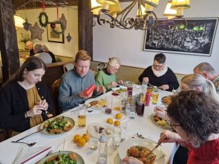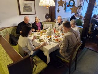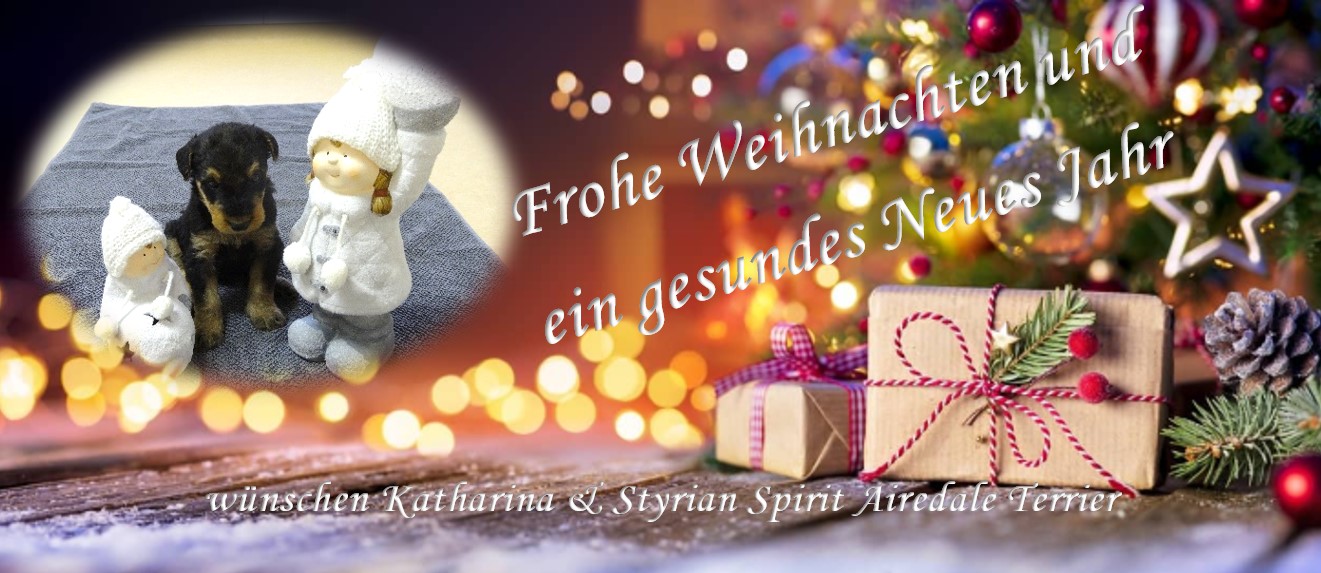 Styrian Spirit Weihnachtsfeier: In einer kleinen, aber feinen Runde fanden sich heute ein paar Styrian Spirit Airedale Besitzer zur diesjährigen Weihnachtsfeier bei unserem Stammgasthaus Gruber in Markt Hartmannsdorf ein. Es wurden nette Gespräche über unsere Vierbeiner geführt, in alten Zeiten geschwelgt und natürlich ein gemeinsames Mittagessen eingenommen. Bei ein paar Weihnachtskeksen und etwas Weihnachtsmusik konnten wir die vorweihnachtliche Stimmung genießen, und uns schon ein bisschen auf die Feiertage einstimmen. |