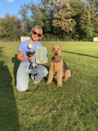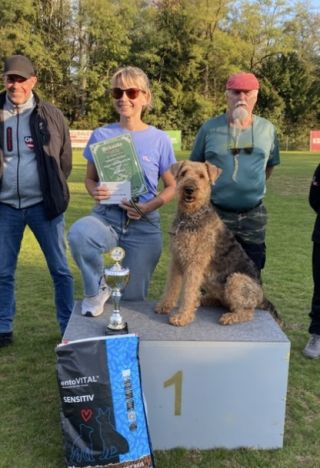 statt. Zwei Styrian Spirit Airedales haben ebenfalls teilgenommen und unter Leistungsrichter Erich Ballmüller erfolgreich bestehen: Styrian Spirit Onya besteht mit Agnes Sonnleitner die IGP BH/VT mit Vorzüglich Styrian Spirit Nyssa erreicht mit Katharina Kribernegg in der IBGH 1 ein Vorzüglicht mit 99 Punkten. |